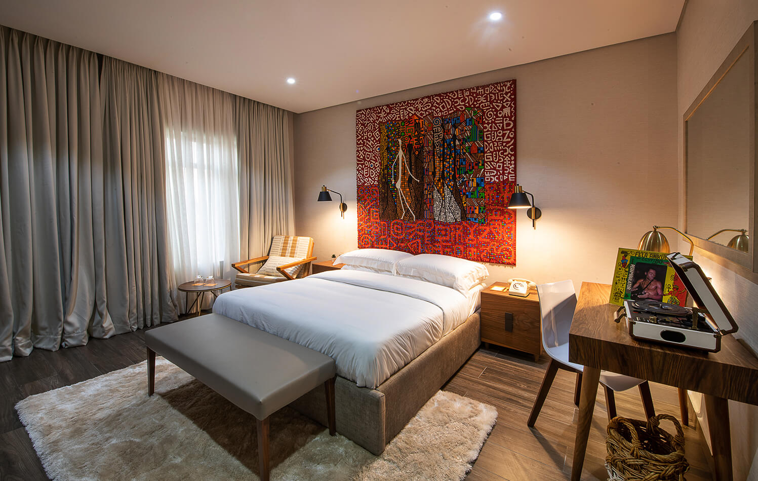 The Accessible Deluxe room is a one-of-a-kind accommodation in Lagos, efficiently designed to ensure the comfort of guests with disabilities. In addition to our sophisticated array of modern amenities, including free Wi-fi, spacious closets, a vinyl record player and a flat screen television, the room offers a wheelchair accessible bathroom with a roll-in shower. It sleeps up to two adults.